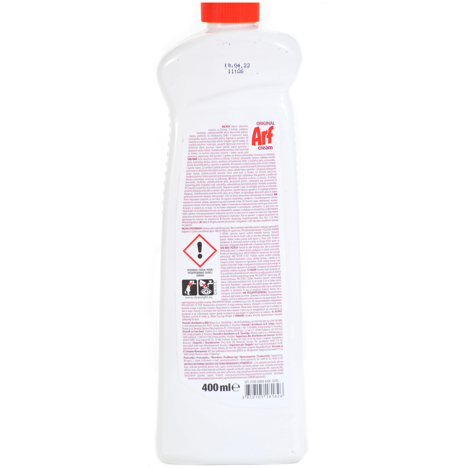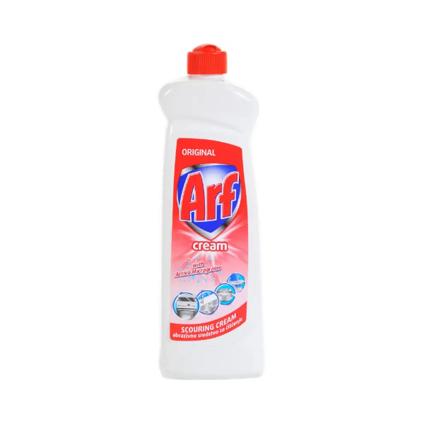 U kuhinji: sudopera, štednjaka, staklokeramičkih ploča, keramičkih pločica, slavina, predmeta od nehrđajućeg čelika. U kupaonici: kada, umivaonika, slavina, keramičkih pločica. Naputak za uporabu: Arf nanesite na površinu koju želite očistiti, istrljajte i isperite vodom. Za osjetljive površine i materijale, provjeriti djelovanje proizvoda na skrivenom dijelu površine, isprati odmah nakon upotrebe i izbjegavati grubo trljanje. Staklokeramičke površine čistiti samo kad su hladne, ne koristiti abrazivne spužvice i dobro isprati prije ponovnog zagrijavanja.