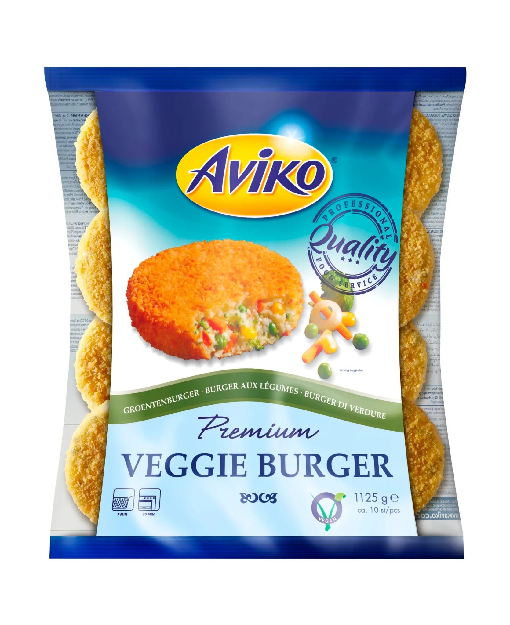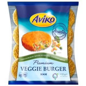 Veganski burger od pire krumpira i mješavine povrća (luk, mrkva, kukuruz šećerac, grašak, brokula). Zahvaljujući panadi, Aviko Vege Burger izvana je neodoljivo hrskav. Dodajte ga na svoj jelovnik kako biste gostima ponudili ukusnu alternativu bez mesa. Jednostavno ga je pripremiti u fritezi, pećnici ili pećnici velike brzine.