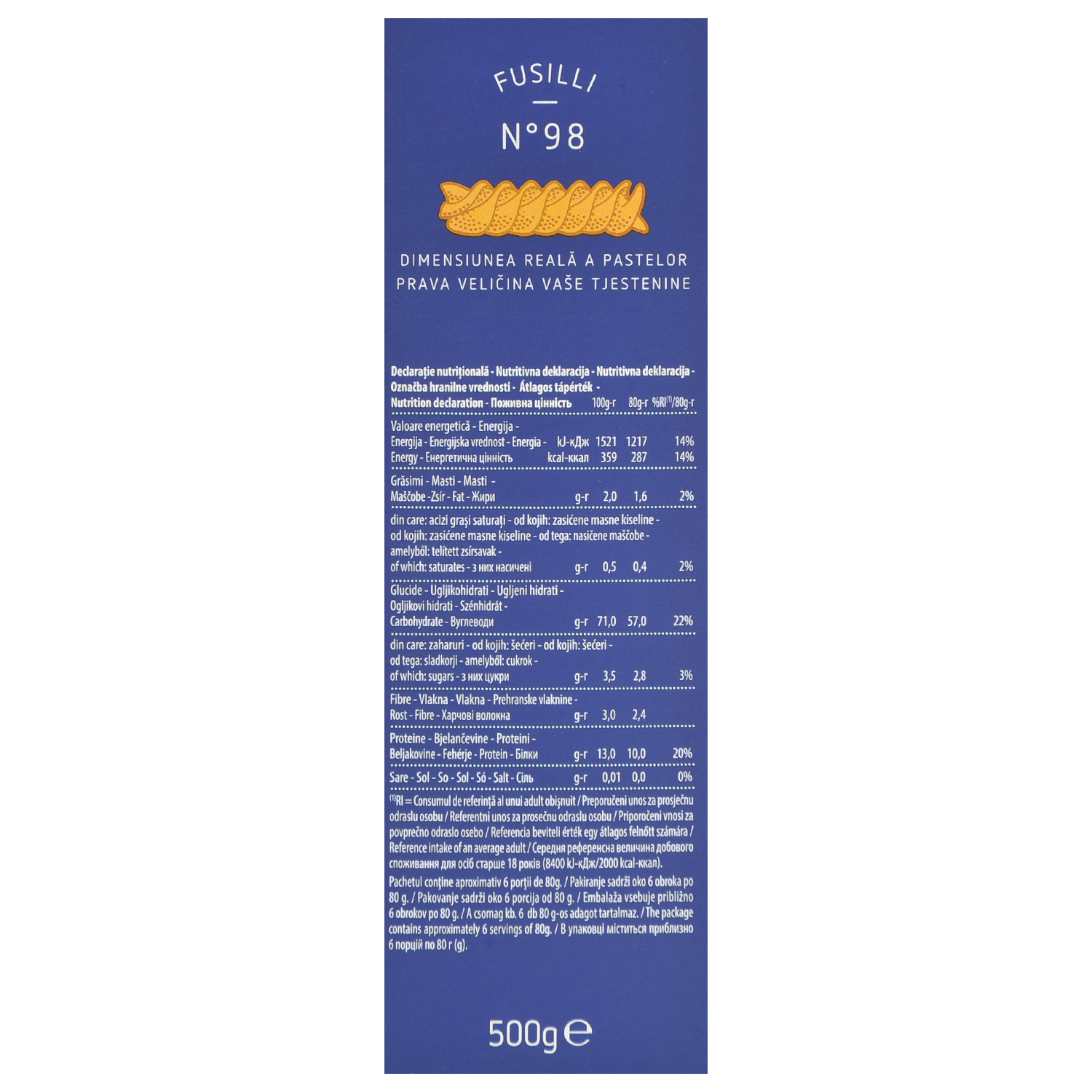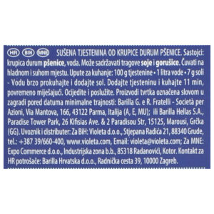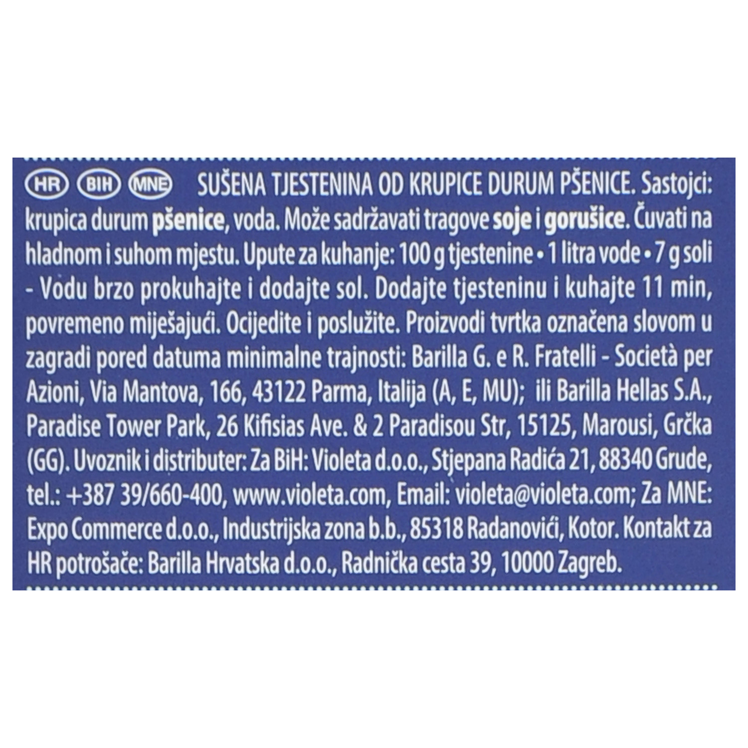 Upute za upotrebu/pripremu: Upute za kuhanje: 100 g tjestenine, 1 l vode, 7 g soli. Vodu brzo prokuhajte i dodajte soli. Dodajte tjesteninu i kuhajte 11 min. povremeno miješajući. Ocijedite i poslužite.