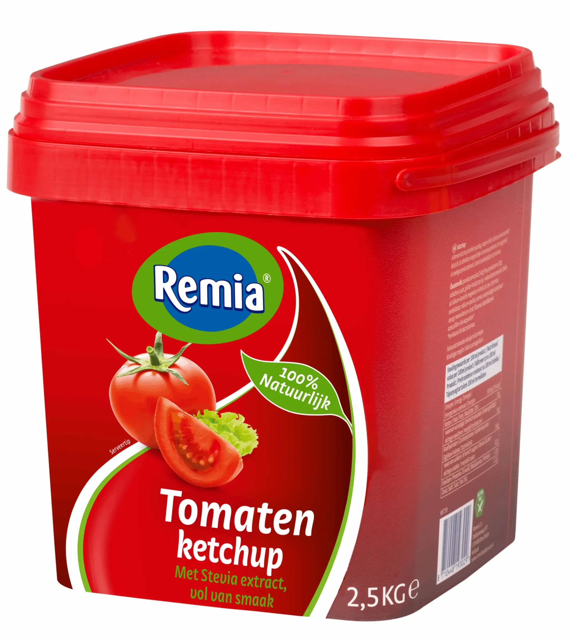 Remia ketchup od rajčice potpuno je prirodan ketchup s ekstraktom stevije i stoga sadrži 30% manje šećera od većine drugih kečapa.