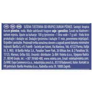 Upute za upotrebu/pripremu: Upute za kuhanje: 100 g tjestenine, 1 l vode, 7 g soli. Vodu brzo prokuhajte i dodajte soli. Dodajte tjesteninu i kuhajte 11 min. povremeno miješajući. Ocijedite i poslužite.