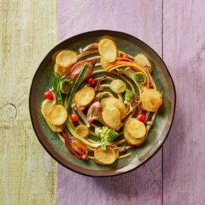 Smrznute ploške krumpira bogatog okusa. Ovaj proizvod je prethodno pržen, što ga čini jednostavnim za brzu pripremu u tavi ili fritezi, te odličnim za uštedu vremena u kuhinji. Ploške se zamrzavaju odmah nakon pretprženja, što ih dulje održava svježima i time, uz ostale prednosti, rezultira manjim gubitkom. Ploške krumpira savršen su prilog klasičnim mesnim ili ribljim jelima ili kao tapas. Aviko Pom’ Sautees prikladan je za bezglutensku, bezlaktoznu, vegetarijansku i vegansku prehranu.