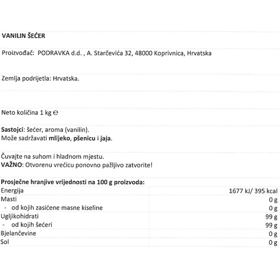 VANILIN ŠEĆER 1 KG